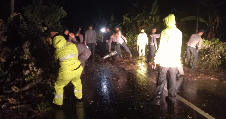 Jembrana-Kehadiran Polri kembali dirasakan masyarakat dalam situasi darurat. Polres Jembrana bergerak cepat mengevakuasi pohon tumbang yang terjadi di sejumlah titik wilayah Kabupaten Jembrana akibat hujan lebat disertai angin kencang, Rabu (21/1/2026) dini hari.